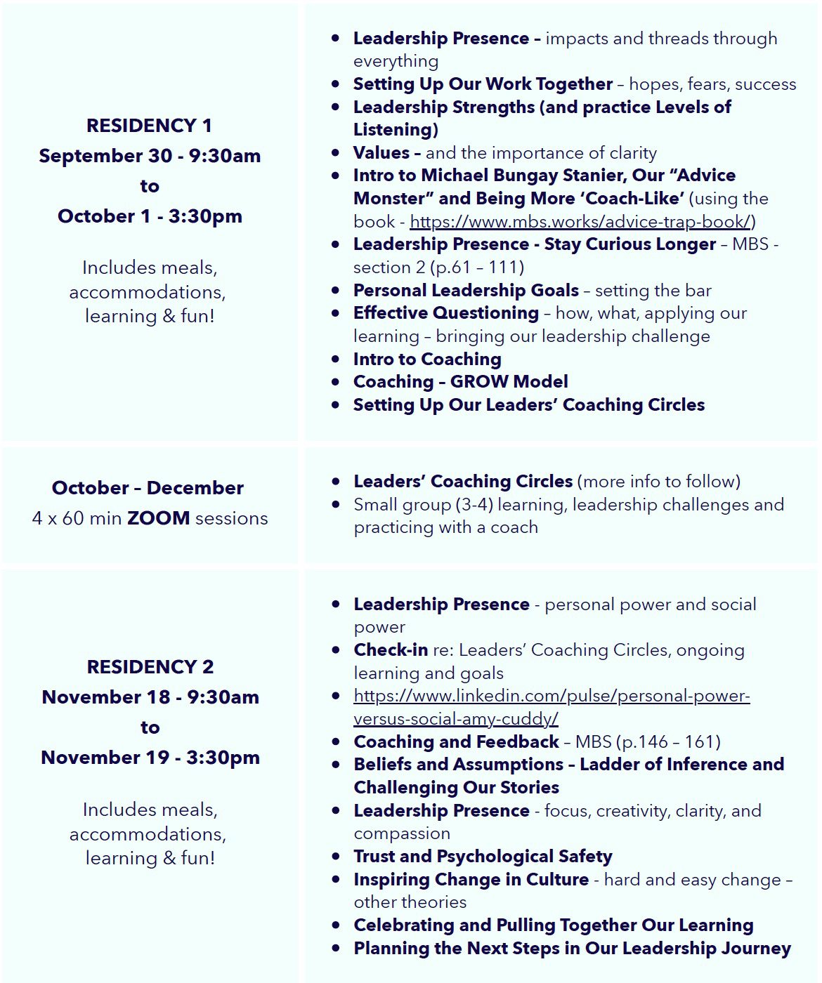 - 4 x 1-hour online Leaders’ Coaching Circles (October - December)